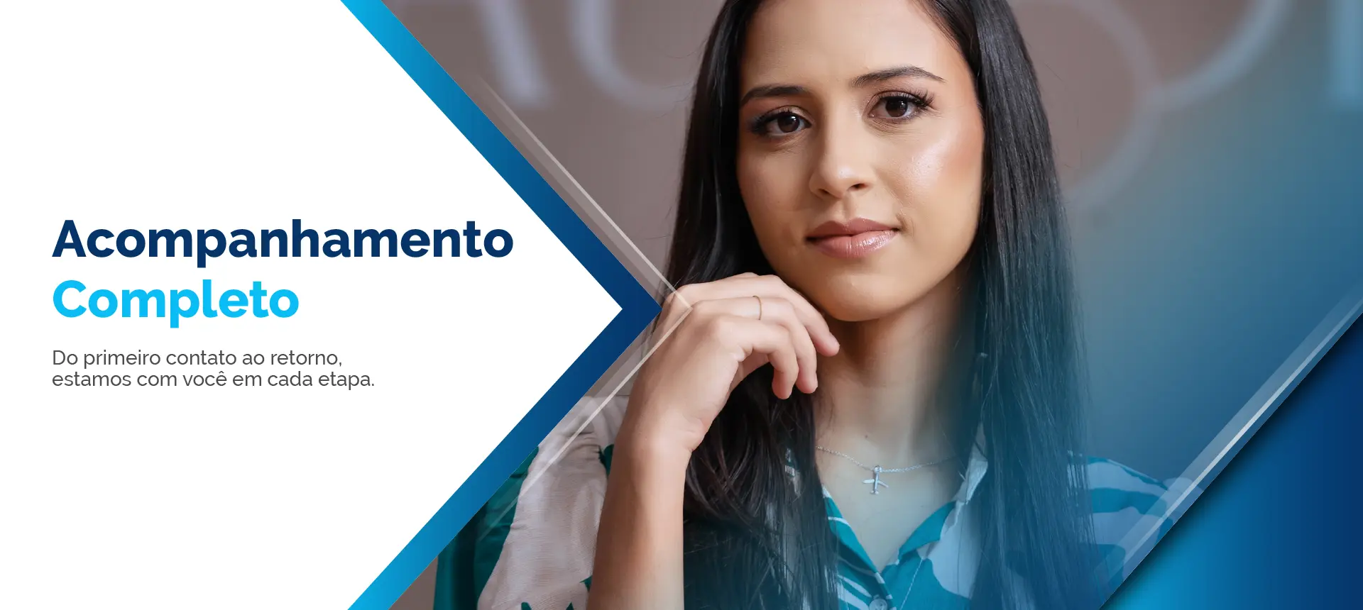 Acompanhamento profissional do planejamento ao retorno com suporte 24 horas.
